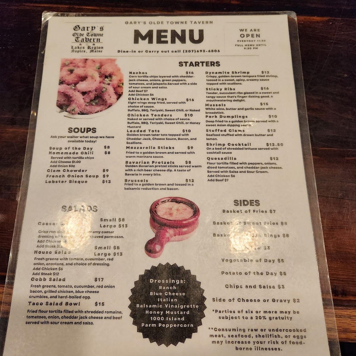 Welcome to Gary's Olde Towne Tavern, located in the charming Naples, Maine. This inviting spot is renowned for its vibrant atmosphere and extensive menu featuring a mouthwatering array of dishes. Diners can kick off their meal with satisfying appetizers like crispy Chicken Wings and Fried Calamari, perfect for sharing or enjoying solo.